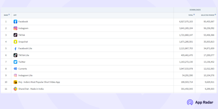 Facebook is the biggest performer out of the social networks with almost 3 Billion monthly active users. 15% of Facebook users are on the platform to find and shop for products. Facebook is a great social media channel for app marketing because it is easy to scale and can get you a lot of volume. Yet if your organic traffic is increasing to a certain level, Facebook will notice it. They will put an end to it simply because they want to get you to do paid ads. The same is happening on Instagram since it’s owned by Facebook too. Nevertheless, it is still a great platform for running ads for mobile apps.